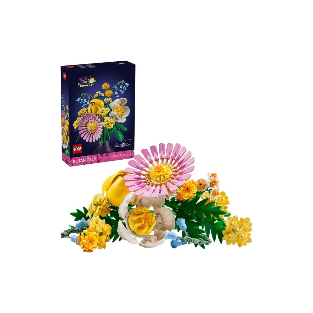 Let kids’ creativity bloom with the LEGO® Botanicals Petite Sunny Bouquet (10347) building set for girls and boys aged 9 and up. Blooming with mood-boosting pastel shades and authentic details, the bouquet becomes a piece of flower decor that can be treasured forever. Budding florists of all ages will have lots of fun building the bouquet, which is filled with a variety of LEGO spring flowers, including Billy buttons, bluebells, Cleopatra ferns, yellow yarrow, a pink gerbera, a peony and a tulip, before using the adjustable stems to create a bespoke floral display. Once they’ve finished building and customizing the bouquet, kids and adults can display it proudly in their bedrooms or use it as desk decor. Plant joy by giving this nature-inspired building kit as a birthday or anytime gift for girls, boys and adult flower lovers. Build Together with friends and family – the LEGO Builder app offers a fun and collaborative experience when building this set. Dimensions – The bouquet building set includes 373 pieces and dimensions vary, but one arrangement measures over 8.5 in. (22 cm) high, 3 in. (8 cm) wide and 2 in. (5 cm) and deep.