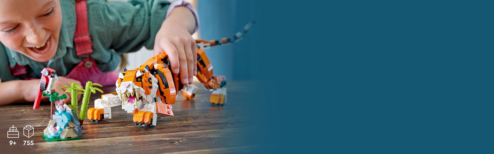 3 animal models in 1 set – LEGO fans can enjoy endless adventures with the Majestic Tiger (31129) building set featuring tiger toy, red panda and koi fish models