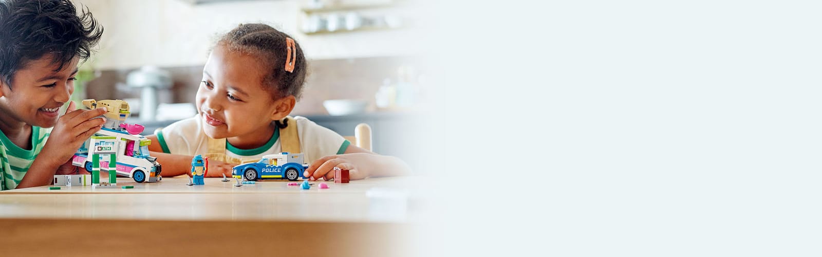 A crooks’ ice cream truck, a cool police interceptor and 2 LEGO® City TV characters set the scene for action-packed play.