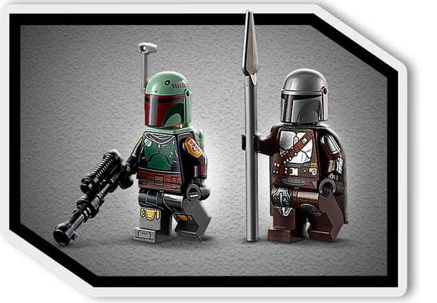 Includes 2 LEGO minifigures: Boba Fett with a blaster and The Mandalorian with his blaster rifle and a beskar spear, plus a Carbonite brick to add to the creative play possibilities