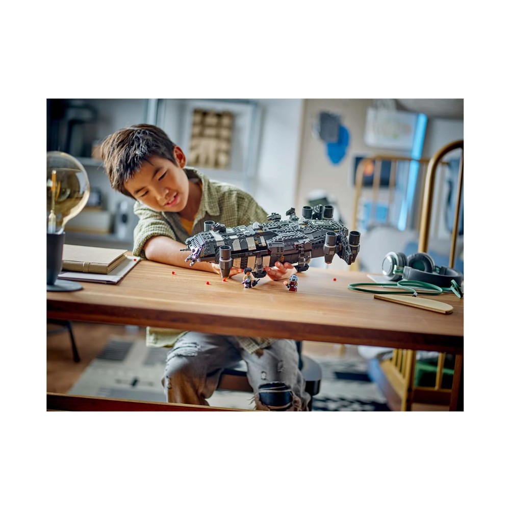 Kids become the heroes in their own Star Wars: Skeleton Crew stories with a detailed LEGO® brick recreation of The Onyx Cinder (75374). This collectible LEGO Star Wars™ buildable starship toy features rotating engines for landing/takeoff or flight, 2 stud shooters, 2 rotating turrets, each with 2 stud shooters, and a grabbing claw. It has seats for all 5 included LEGO Star Wars characters (the Jod LEGO minifigure in the cockpit and Wim, Fern, KB and Neel in the passenger compartment), plus storage for the 4 buildable torches and other cargo. There is also a kitchen table and a bed, plus accessory elements including fruit and a walkie-talkie to inspire creative play. A top LEGO gift idea for Star Wars fans and collectors of Star Wars memorabilia aged 10+, this vehicle toy building set comes with step-by-step instructions. Be sure to check out the LEGO Builder app for zoom and rotate digital viewing tools to add to the creative experience. Buildable Star Wars: Skeleton Crew starship toy – Children can play at being heroes in their own missions aboard The Onyx Cinder with this detailed brick-built vehicle toy. 5 LEGO® Star Wars™ characters – A Jod LEGO minifigure with a vintage-style blaster, plus Wim, KB, Fern and Neel LEGO minifigures, each with a buildable torch accessory. Authentic features – A cockpit, compartment with seats for 4 LEGO® minifigures, rotating engines for landing/takeoff or flight, 2 stud shooters and 2 rotating turrets, each with 2 stud shooters. Unlimited creative-play – The Onyx Cinder also has an opening cargo compartment with a grabbing claw, walkie-talkie, fruit and a pirate telescope, plus storage for the blaster and torches. Gift for Star Wars™ fans aged 10 and over – Give this collectible LEGO® toy building set to kids who are into Star Wars: Skeleton Crew and collectors of Star Wars memorabilia. Interactive digital building – Using the LEGO® Builder app, kids can zoom, rotate and visualise a digital version of this construction model as they build. Fun LEGO® Star Wars™ sets for all ages – LEGO Star Wars building toys allow kids and adult fans to recreate iconic scenes, dream up their own creative stories or simply display the buildable models. Build, play and display – This brick-built Star Wars™ vehicle toy measures over 11 cm (4.5 in.) high, 36 cm (14 in.) long and 27 cm (10.5 in.) wide.